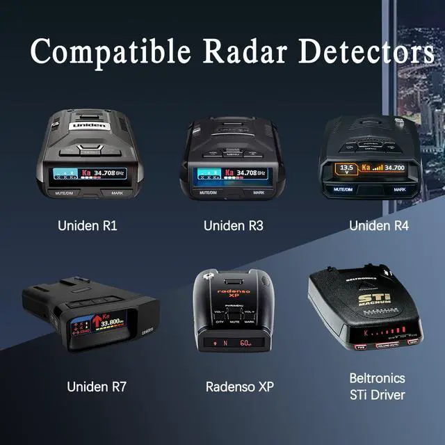 Suitable for all Radar Detectors with phone type jacks(RJ11). Compatible with Valentine Radar Detector gen 2 V1 Gen2, Escort Redline 360c radar detector, Escort Passport 9500ix 8500 X50, Escort Max 3, Escort IXC, Escort Solo series, Uniden R1 R7 DFR8, Beltronics Vector Pro and more radar detectors.