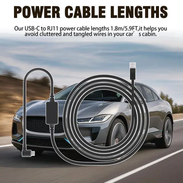 Clean Organized Driving Space:Our USB-C to RJ11 power cable lengths 1.8m/5.9FT,it helps you avoid cluttered and tangled wires in your cars cabin. This provides a clean look while giving you enough flexibility to place your radar detector exactly where you need it for clear visibility. helping you secure a clean and organized setup that minimizes loose wires and distractions while you drive.