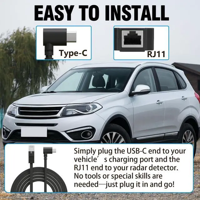 Easy To Install:Say goodbye to complex installations! Simply plug the USB-C end to your vehicles charging port and the RJ11 end to your radar detector. No tools or special skills are neededjust plug it in and go!