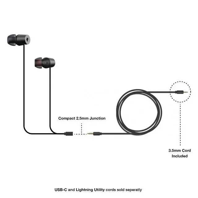 Each Utility Series headphone includes the 3.5mm Utility cord or bundle an additional Lighting or USB-C Utility cord.devices.