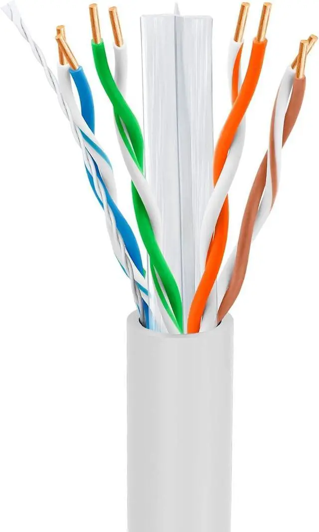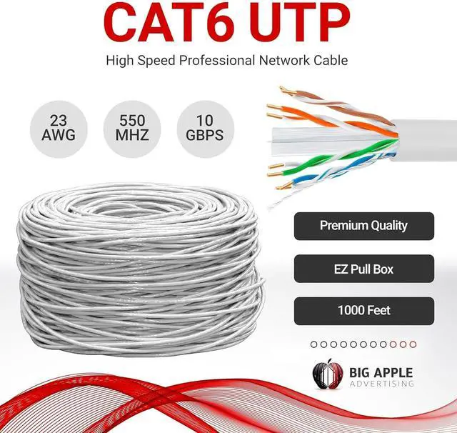 Conductor TypeCopper Clad Aluminum (CCA) for superior performanceCompatible DevicesRouters, VoIP, IP Cameras, Consoles, PoEBandwidth & SpeedUp to 10 Gbps with 550 MHz frequencyCable DurabilityPVC jacket, high stress endurance, long lifespanLength & Packaging1000ft in EZ-pull box with foot-marked lengthsCable CategoryCAT6, suited for 100/1000BASE-T/10 Gigabit networksCable Gauge23 AWG Premium Networking with Big-A Cat5e Cable