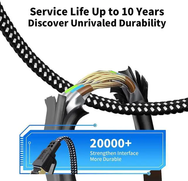 Marvelous Durability Flat ethernet cable wrapped with quality cotton braided cord, which makes the lan cable stronger and more durable. And this sturdy ethernet cable cat 8 can be bended at least 10 thousands times, so that you can reuse it without any concerns.