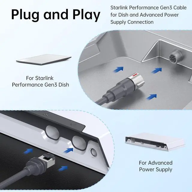 Optimized for Starlink Performance Gen3This high-performance cable is specially designed for the Starlink Performance Gen3 rectangular satellite, ensuring a secure and reliable connection for optimal internet performance. Whether youre in a compact or expansive space, its perfect for all installations.