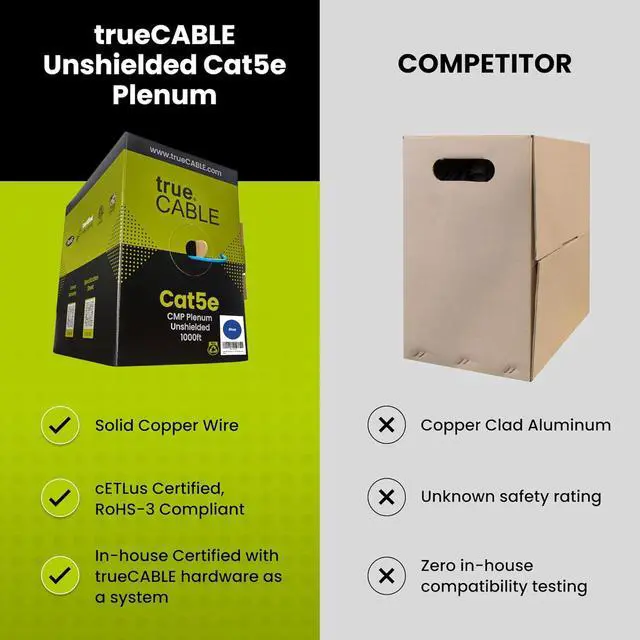 [ Certified by trueCABLE] Our data cables have been tested with a DSX-8000 Versiv CableAnalyzer and are in compliance with ANSI/TIA 568.2-D standards, RoHS-3 compliant, and cETLus certified. Backed by our FOREVER WARRANTY. Compatibility & performance tested with trueCABLE RJ45 Connectors - B088KTYHMR and B07XB3CPJK.
