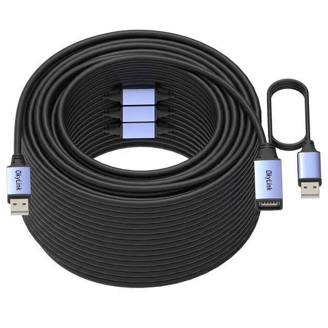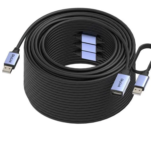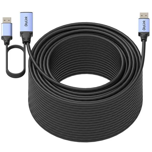 Durable Construction & Broad Compatibility Reinforced aluminum alloy connectors and high-strength PVC cable provide durability, anti-interference, and heat dissipation. Supports PCs, Macs, printers, scanners, CCTV cameras, keyboards, mice, USB drives, and other USB-A devices. Usage Note:For 15M+ active cables, connect the optional external aux power first, then the host device for maximum stability.