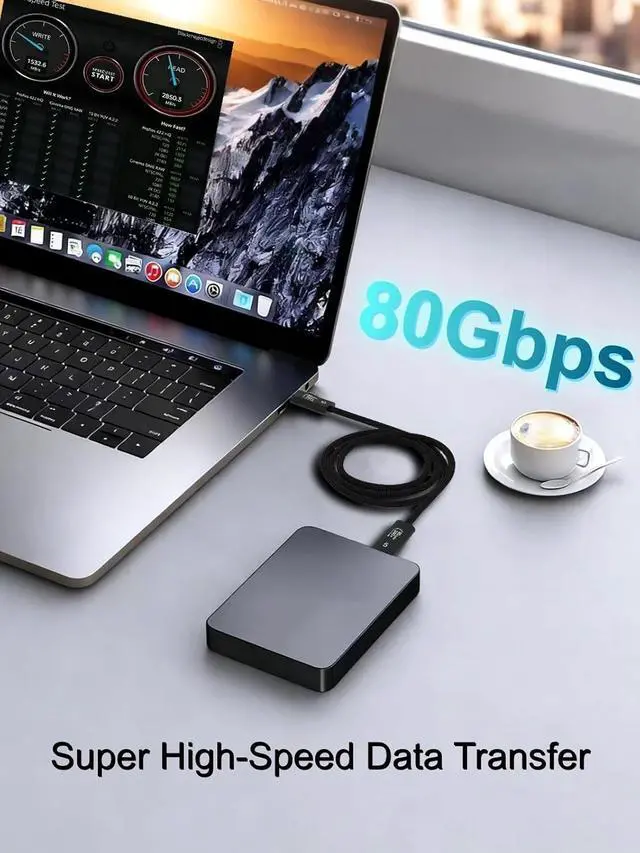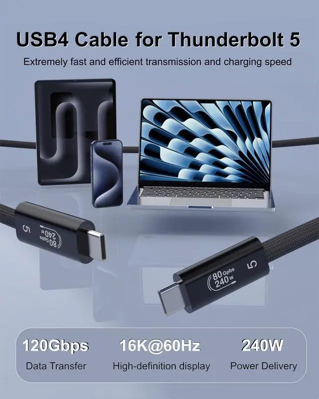Thunderbolt 5: This USB C for Thunderbolt 5 cable supports data transfer speed up to 80 Gbps of bi-directional data transfer and up to 120 Gbps of video bandwidth. Easily transfer large files, data, and high-definition videos/photos, greatly improving work efficiency. Ideal for professionals and enthusiasts with high-speed data transfer and video editing.