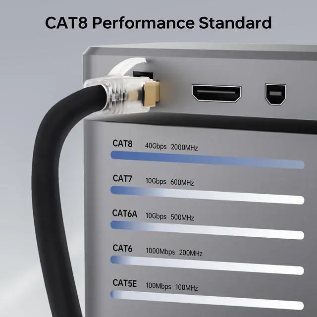 [ Lightning 40Gbps transmission ] Cat 8 lan cable support up to 2000MHz broadband, easy to deal with the game competition, daily office, streaming 8K videos , file download routing data multiple scenarios, no delay and no lag.