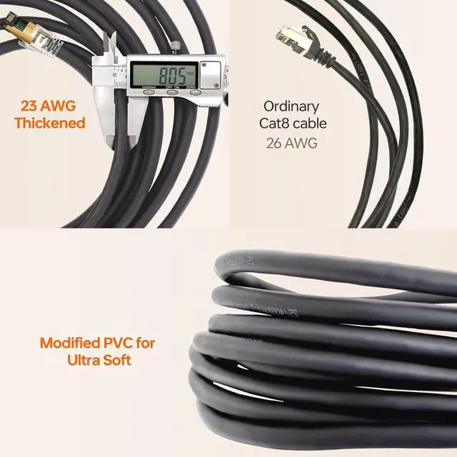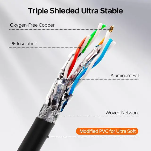 [ High Quality Connection ] Cat 8 Ethernet Cable is made of shielded foiled twisted pair(S/FTP) oxygen-free pure copper wires 23AWG. Individually foiled pairs with aluminum shielding & overall cable screen shielding provides the extreme reliability and blazing fast connections