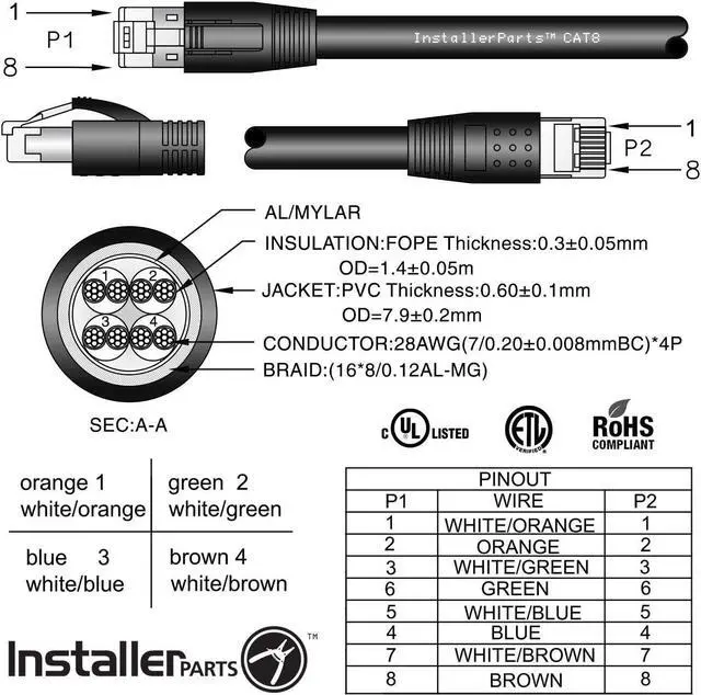 High Speed Cat8 Cable: The Installerparts Cat8 Patch Cable Is Ideal For Use In A Performance Demanding High Speed Ethernet Network Or Where Future-Proofing Is Desired. Our Cat8 Cables Are Fully Backward Compatible With Existing Gigabit Or Cat5, 6 & 7 Networks.