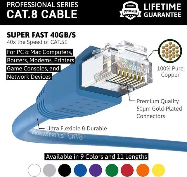 Maximum Compatibility: Use The Cat8 Patch Cable To Connect Devices On A Local Area Network (Lan), Such As Laptops, Pcs And Mac, Computer Servers, Printers, Modems, Routers, Switch Boxes And More. Tia/Eia* T-568B Standard Wiring. Ul/Cul Listed. Rohs.
