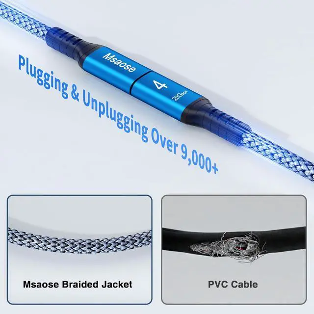 Universal Compatibility: 20Gbps USB 4 cable for 15 foot braided Thunderbolt 4 cable works flawlessly with all Thunderbolt 4 / 3 / USB-C devices. Backward compatible with Thunderbolt 3, USB 3.2 Gen 2, USB 3.2 Gen 2 x 2, USB 3.0. Compatible for MacBook Pro M1/M2/M3, Dell XPS, iPad Pro, Samsung Odyssey G70B 4K@144Hz, CalDigit TS4 dock, Razer Core X eGPU, Apple Studio Display, iPhone 16 / 17, Mac mini M4 / M4 Pro, SSD, power bank, GaN charger, etc.