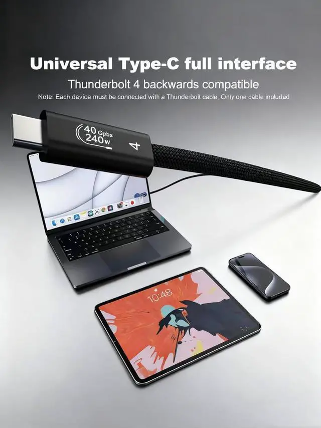 Universal compatibility: This cable is fully backwards compatible with Thunderbolt 3, USB 3.2/3.1/3.0, and USB 2.0. It works with MacBook Pro/Air, iPad Pro, iPhone 15/16, Dell XPS, Thunderbolt docks, SSDs, and more.