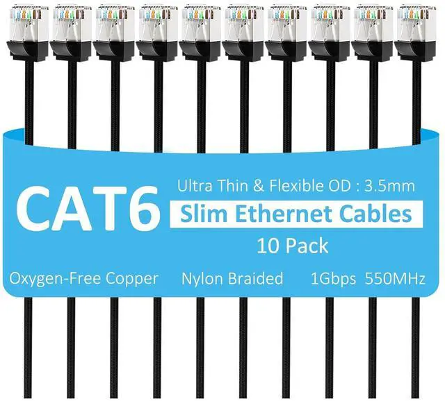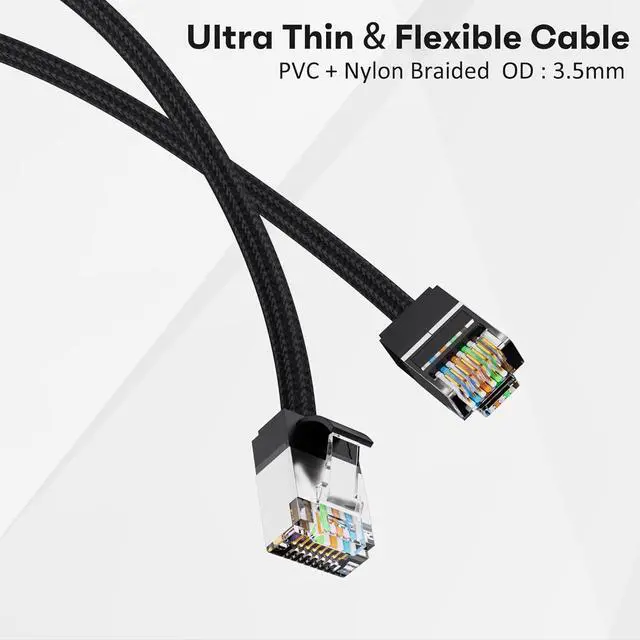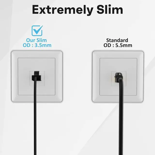 Ultra Slim Design: The diameter of CAT6 ethernet cables is about half of typical patch cables. This means that it is much easier to use thin cat6 cables to lay multiple connections in tight spaces, making it the perfect choice for installing cables in corners and narrow spaces. OD is approximately 3.5mm.