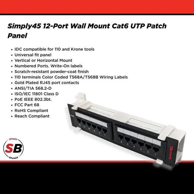 Effortless Network Organization - 12-port Cat6 patch panel simplifies cable management for home or business networks, ensuring a neat and professional setup.