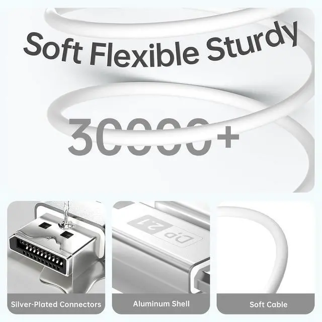 up to 80Gbps High Speed Data Transmission: This fiber optic dp 2.1 cable can transmits data at 80Gbps using fiber optic technology, supporting Dynamic HDR, HDCP 2.2, and DSC 1.2a for stunning picture quality and color depth. Compatible with all DisplayPort devices and backwards compatible with older versions.