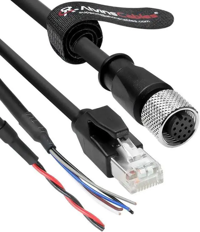 Plug A: M12 12 Pin Female. Plug B: RJ45+2-wire power cable+5-wire functional cable. Cable Length: 5m/16.4ft. We can customize cables with other length, please send a message to us before making the order.