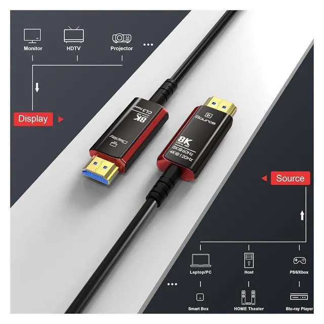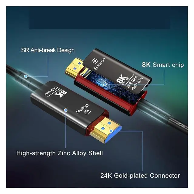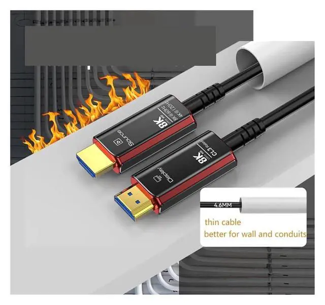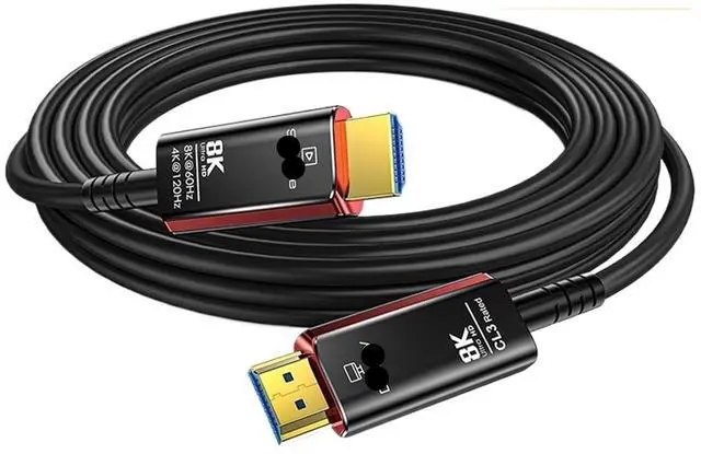 8K Optical Fiber HDMI Cable8K optical fiber HDMI 2.1 Cable is evolving rapidly; it realizes ultra-long-distance audio and video transmission, without compression, no delay in light speed transmission, no electromagnetic interference, and no radiation. It is compatible with 8K@60HZ and 4K@120HZ, clearly displays every particle, and accurately processes every source.