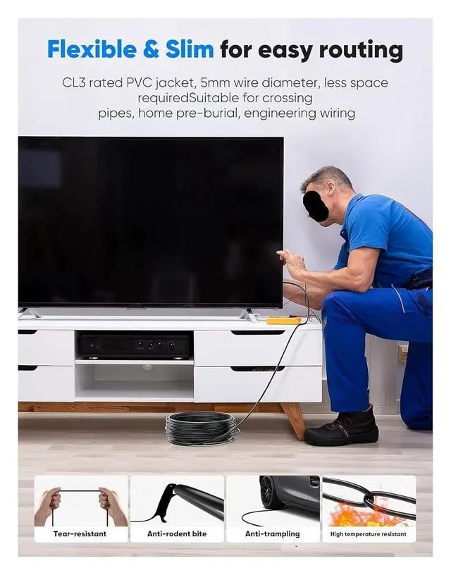 Reinforced classic materials This 8K HDMI Cable uses CYANMI' most popular classic , with a new Fit For Smart chip, making it reach an unprecedented height. The strength of the aluminum alloy shell and the tail's anti-bending has been to make it more . The plug part is still made of 24K gold-plated material, which accurately transmits signals. The grade tensile nylon material also greatly extends its life.