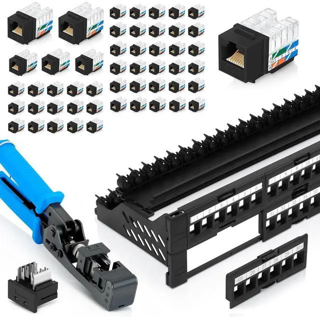 Product 1 - 48 Port Keystone Patch Panel (1-Pack) - Use with Slim Profile Keystones ONLY (Wider Jacks May not fit Side by Side) - with Adjustable Rear Cable Management Bar