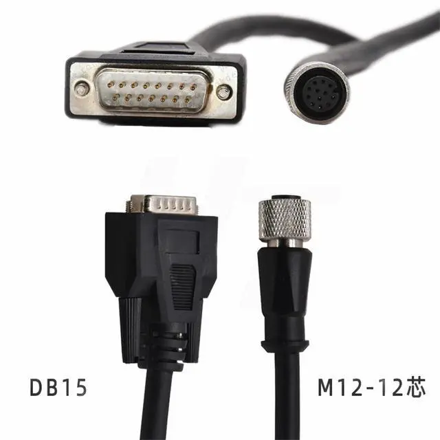 M12 A-coded 12 pin female to DB15 connectors, gold-plated contacts, nickel plated brass shell, waterproof, solid and durable connection