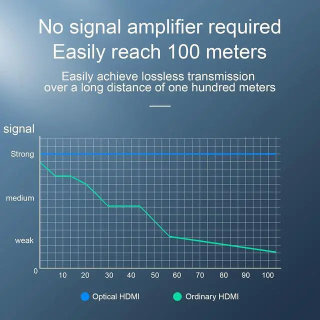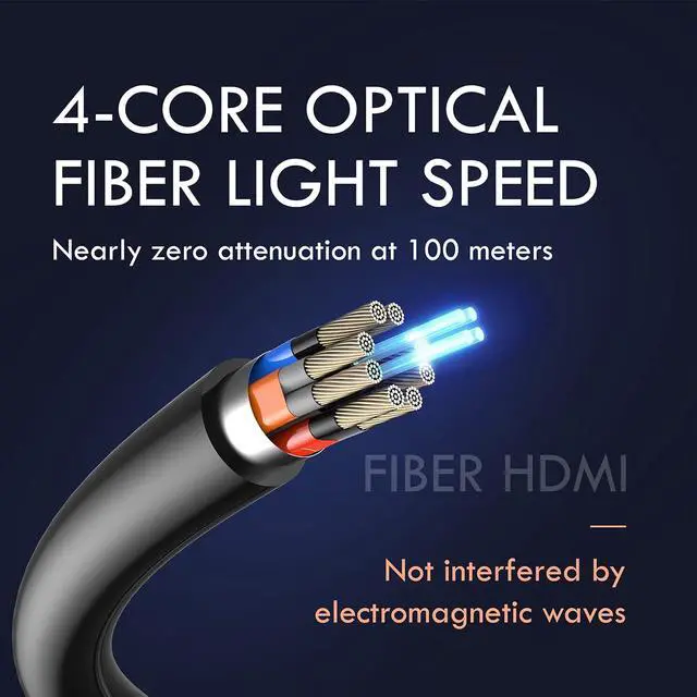 Meets HDMI 2.0 standardsLong Fiber HDMI Cable support 4K@60Hz,Up to 18.2Gbps Bandwidth well meet the HDMI 2.0 standard .Distance transmission is better than Copper HDMI Cable,and no signal delay.