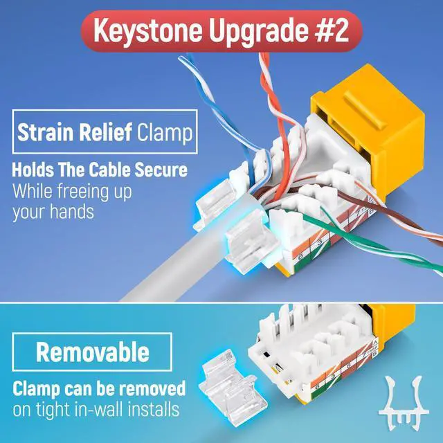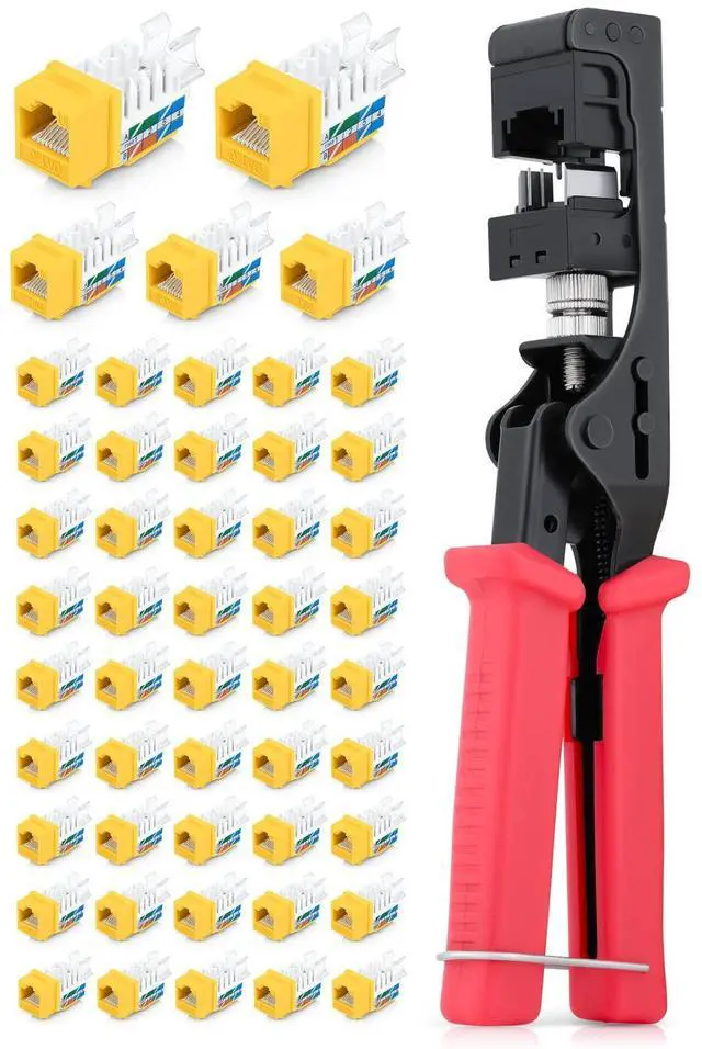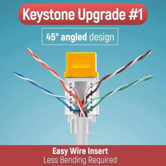 Product 1 - 45° Angled CAT6 Keystone Jack in Yellow - Slim Profile RJ45 Ethernet Connector - Compatible with 45° Angled Speed Termination Tool - 45Term (B0BL3GS7ZY) - 50-Pack