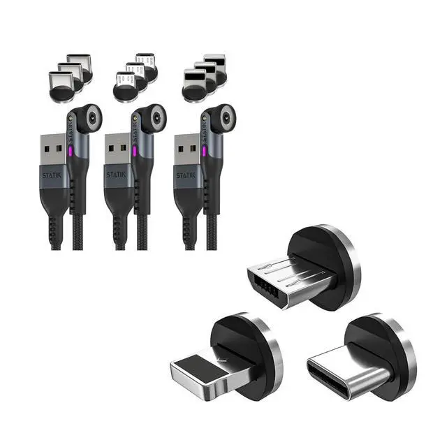 STATIK 360 3 Pack 6ft - VERSATILE & INTERCHANGEBLE MAGNAETIC CAHRGER CORD HEADS - The magnetic USB C cable features removable magnet phone charger heads, allowing you to alternate between USB C cable magnetic cable tips for charging all your devices. Equipped with USB C magnetic, magnetic micro USB, USB magnetic adapter, and magnetic type C charger tips, it's the perfect magnetic charging cable USB C and other devices.