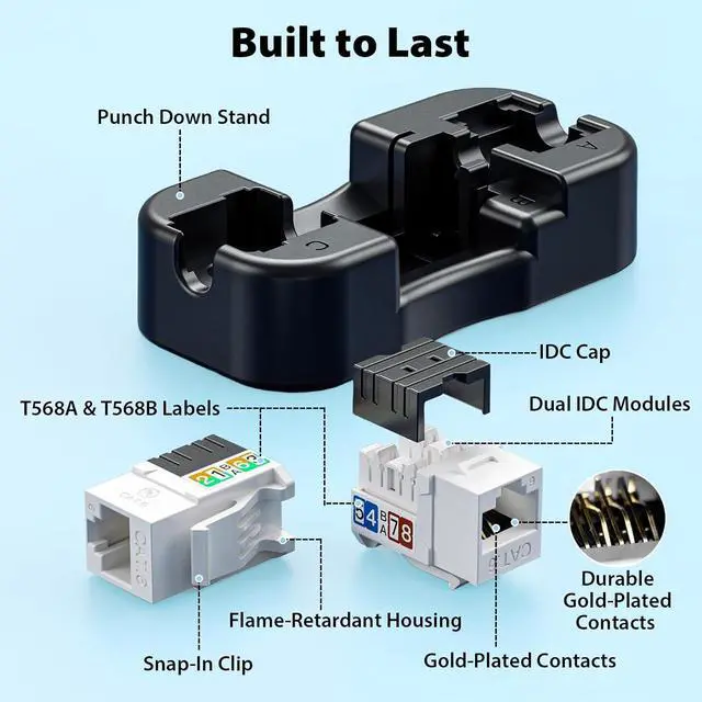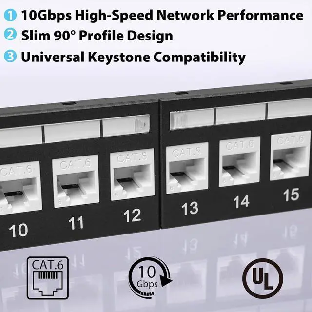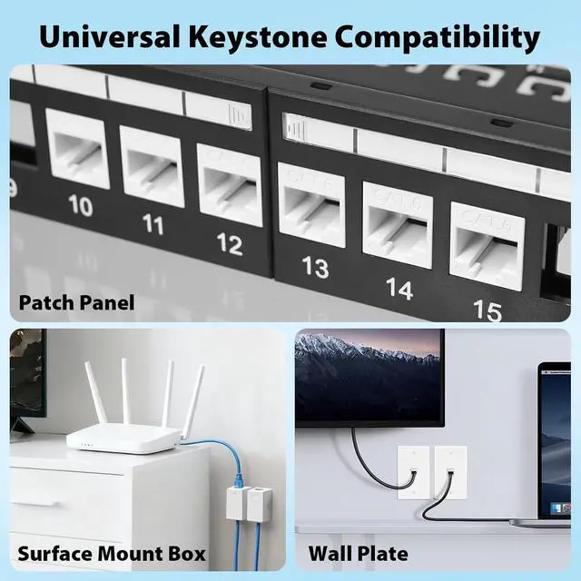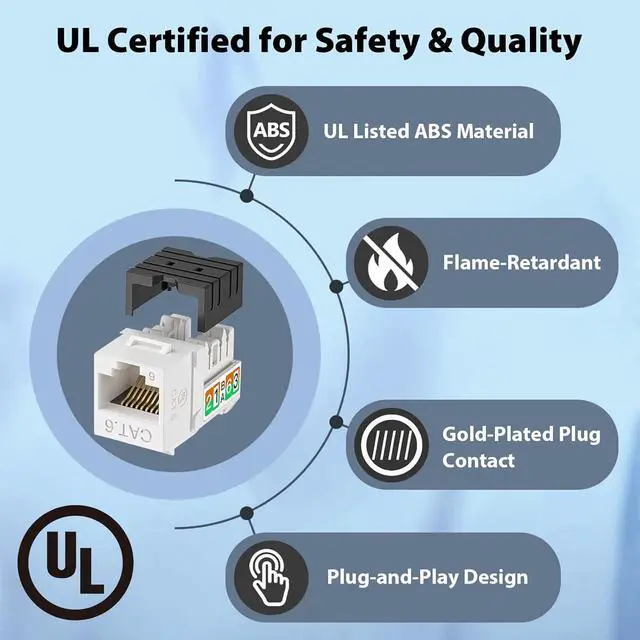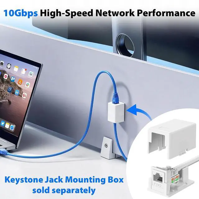 10Gbps High-Speed Network Performance Supports CAT6 keystone jacks Ethernet cabling with speeds up to 10Gbps, ensuring reliable, high-bandwidth connections for demanding networks