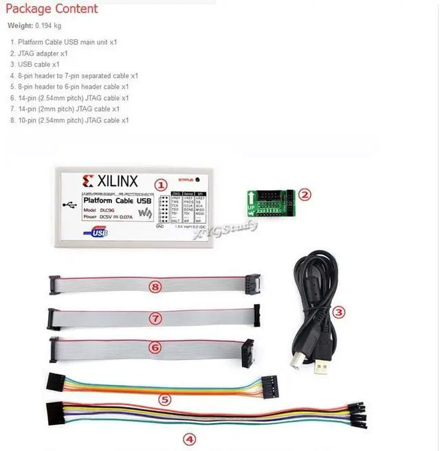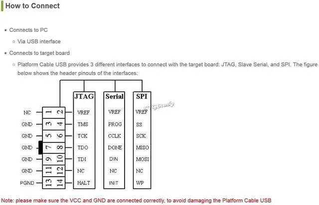 Platform Cable USB (Connects to PC: Via USB interface) XILINX FPGA/CPLD/PROM configuration and programming Cable Supported Software : Xilinx ISE, iMPACT, ChipScope, Vivado Supported Interfaces : JTAG, Slave-Serial and SPI