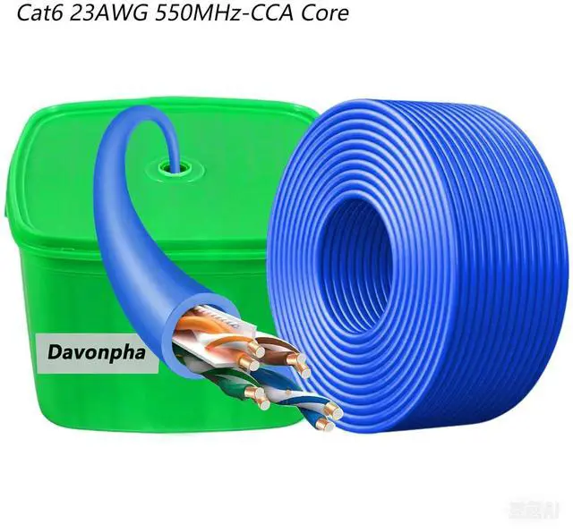 Cable Type: CAT6e 4/UTP Unshielded Twisted Pair HDPE PVCApplication: Voice and Data communicationsConductor: 23AWG 0.57mm CCA Conductor (Copper Clad Aluminum)Markings: Running "FT" Counts Printed on Cable Makes Measuring EasyPackaging: Easy Pull Box