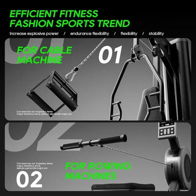 V Shaped Bar +V Handle with Rotation + Straight Rotaing Bar - Constructed of high-quality steel with knurling rubber handle,Ideal for performing pull-downs,triceps press-downs, upright rows,straight bar curls, seated rows, plus more. 0.5 inch hole can fit easily for all cable system.