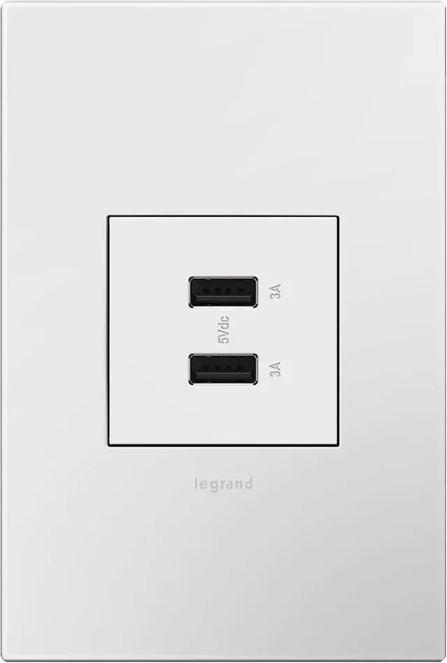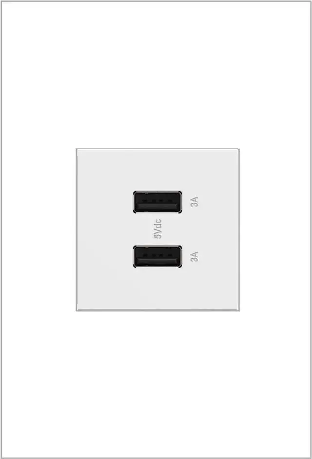 Charge phones, tablets and more up to 40% faster, with Ultra-Fast USB Outlets from the adorne Collection. Delivering a leading 6 amps of power to its two USB connections for faster in-wall charging, without an adapter. Made exclusively for use with screwless Wall Plates from the adorne Collection, sold separately.