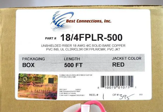 Cable Wholesale features a variety of different types, styles, and gauges of Security and Fire Alarm cables. We also offer our Fire/Security cables in either Pullboxes, Speedbags, or Spools for your installation convenience. Features. Fire Alarm. Security CableSpecifications. End 1 Bare end. End 2 Bare End. Length 500 Feet. Color Red. Weight 15 lbs
