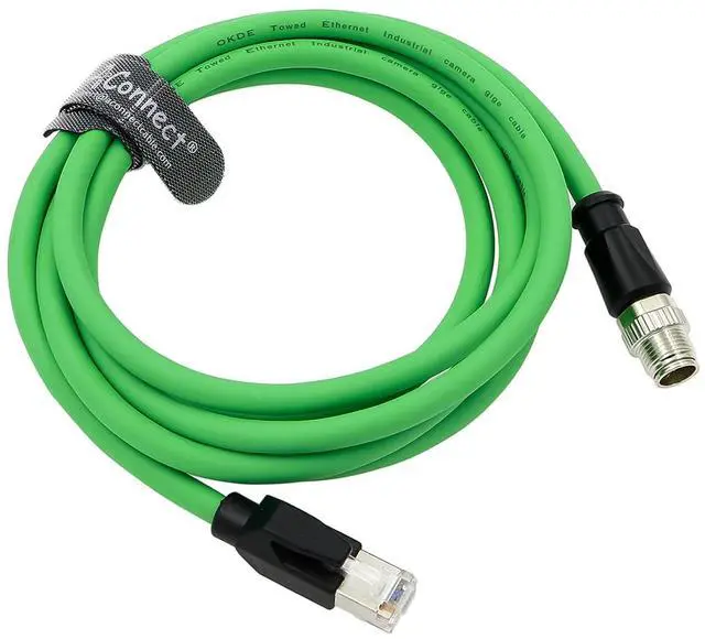 M12-X-Code Ethernet-Cable for Cognex in Sight Industrial Camera M12 8 Pin Male X Code to RJ45 Shielded Cat6ae Ethernet Cable 3M (Green)