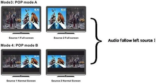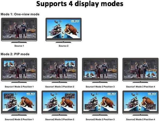 2.Supports multiplexed HDMI 2-input and 1-output and 4 display modes
