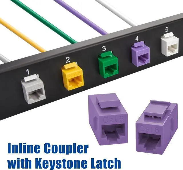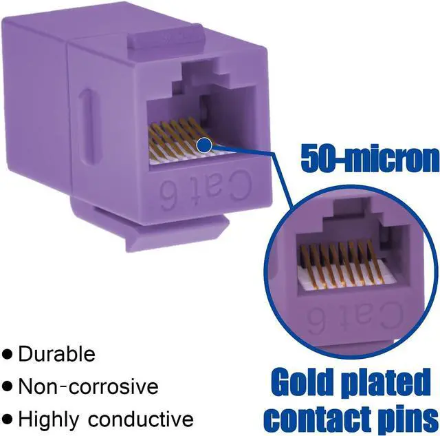 Beszin's Cat.6 RJ45 Inline Couplers are great for running ethernet cables from point A to point B. They are feed-thru couplers for voice & data applications. They are a great alternative to extend network cables throughout the home or office. They are super easy to install and will fit most standard keystone wall plates and patch panels. Features 50-micron gold plated contact pins and an easy snap-in latch that ensures a secure and corrosion free connection.