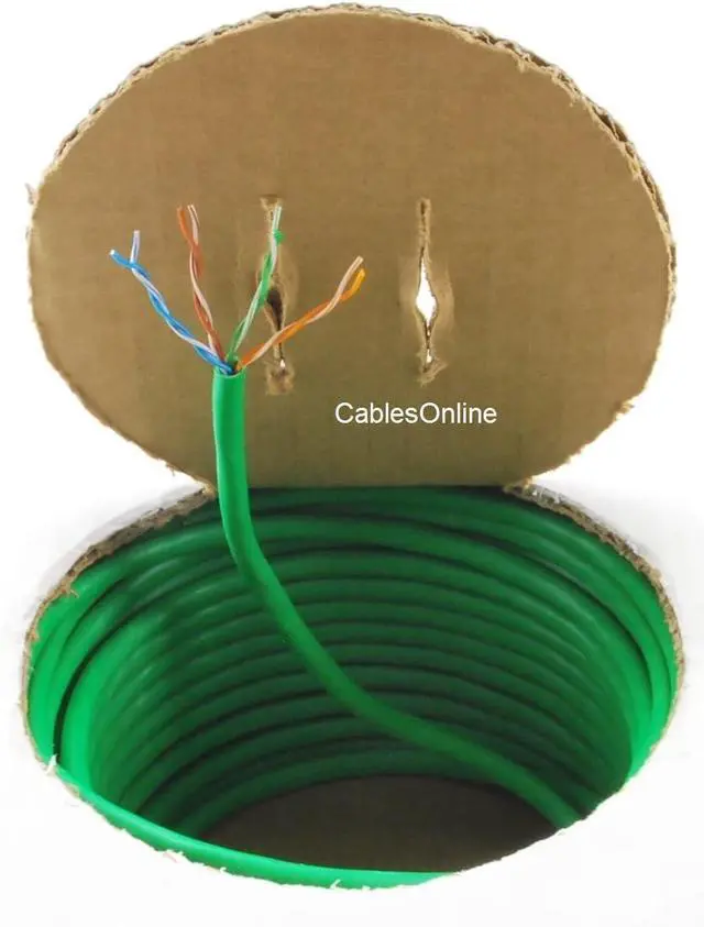 CablesOnline, 250ft CAT5e RJ45 350mhz UTP Solid Ethernet Cable Spool Green Jacket
