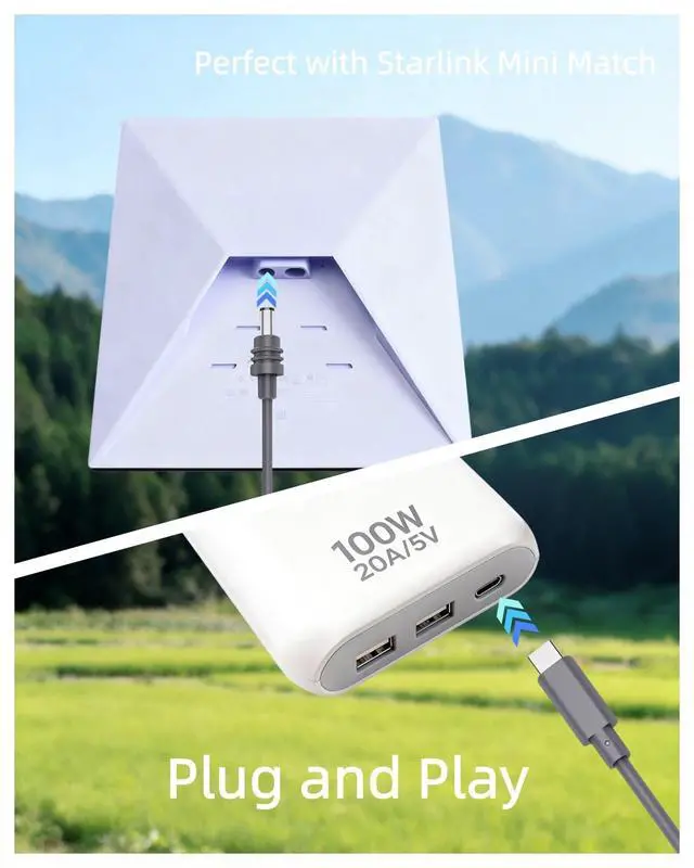 Power your Starlink Mini over long distances with this 49.2ft USB-C to DC cable. Constructed with premium 20AWG copper wires and multi-layer shielding, it minimizes interference and ensures stable, reliable network performance. Waterproof connectors and PVC casing make it suitable for indoor and outdoor use. Compatible with PD 100W+ (20V 5A) power banks, plug & play design. Perfect for homes, RVs, boats, or outdoor Starlink Mini setups requiring extra reach.