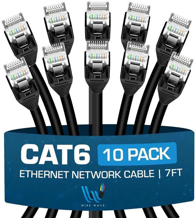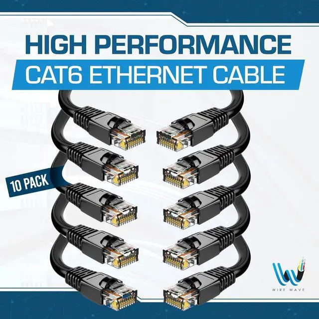 Upgrade your internet connection with the Wire Wave Cat6 Ethernet Cable 10 Pack. These Cat6 patch cables provide reliable, high-speed data transfer rates of up to 1 Gbps over distances up to 50 feet (15.24 meters). With their durable construction and RJ45 connectors, these network cables are perfect for connecting computers, routers, modems, gaming consoles, and other devices to your home or office network. The 10 pack offers excellent value, ensuring you have enough cables for all your connectivity needs. Whether you're streaming 4K videos, gaming online, or transferring large files, these Cat6 internet cables deliver consistent performance and stable connections. Upgrade your network infrastructure with the Wire Wave Cat6 Ethernet Cable 10 Pack and experience seamless internet connectivity.