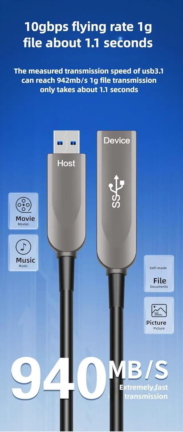 USB A to A fiber optic cables demonstrate significant advantages in multiple fields. They adopt advanced fiber optic technology and have extremely fast transmission rates. For example, the fiber optic USB 3.1 A - A data cable can reach a speed of 10Gbps. The fiber optic USB 3.1 Type A data cable also has excellent transmission performance and can quickly complete the data transmission of high - definition files and so on.