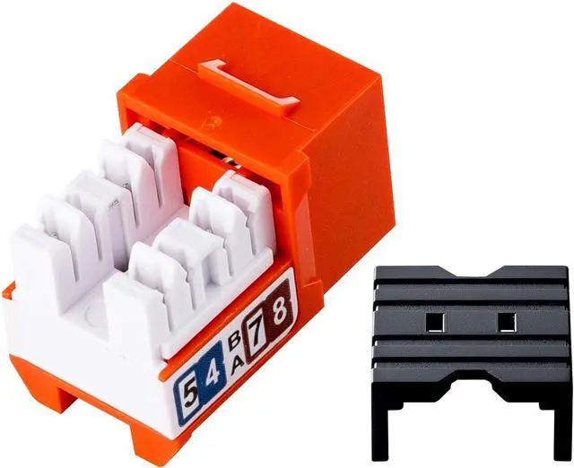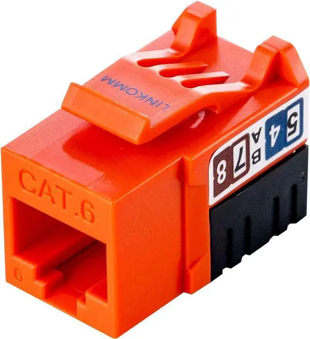 LINKOMM Slim Profile Keystone Jack is 90-degree wire connection, and slim profile for high density cabling installation. It is commonly used onto 3-port and 6port wall plates and 1U 48-Port patch panels. It can be mounted onto surface mount boxes, keystone wall plates, or patch panels. T568A and T568B wiring map are labeled and easy to read. The strong and fire-retardant plastic housing features guarantee the best quality.