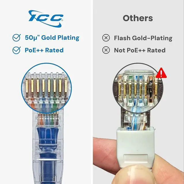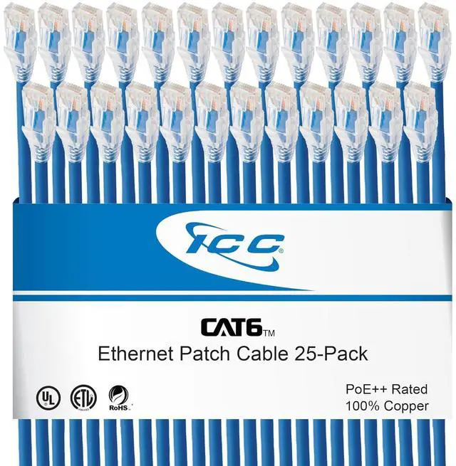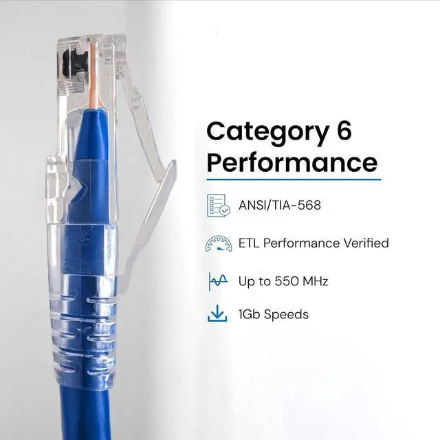 PoE++ TYPE 4 RATED PATCH CABLE: This CAT6 Ethernet patch cable is built with stranded 24 AWG pure copper conductors and supports Power over Ethernet (PoE++) Type 4 up to 100W, suitable for IP cameras, wireless access points, and other high-power network devices. Supports up to 250 MHz performance and is ETL and UL listed for safety and compliance