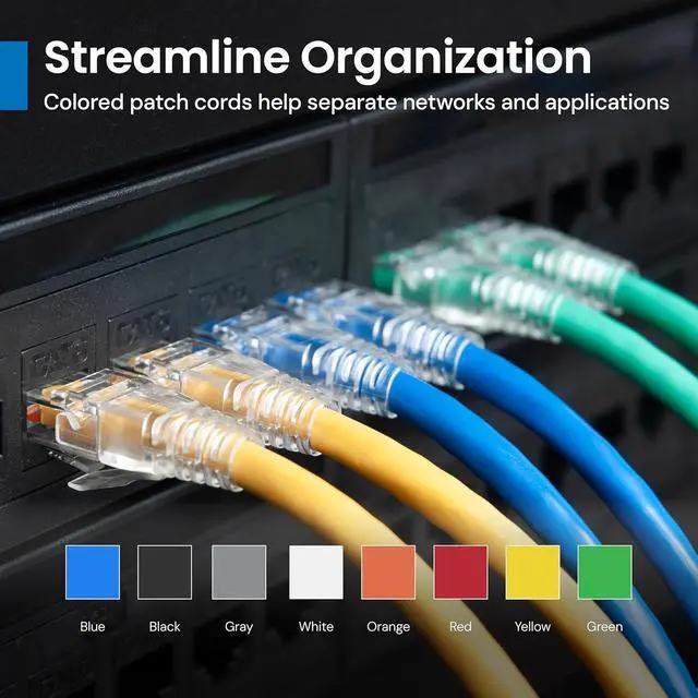 DATA CENTER GRADE PERFORMANCE: CAT6 patch cables are wired to T568B and factory tested to meet TIA performance standards, supporting 10/100/1000 Mbps Gigabit Ethernet with bandwidth up to 250 MHz for structured cabling environments