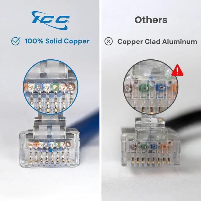 NATIONAL ELECTRICAL CODE (NEC) COMPLIANT: Built with 100% stranded pure bare copper conductors, meeting NEC Section 800.179, which mandates that Conductors in communications cables, other than coaxial, shall be copper. Rated for 75°C and 300V, CAT6 patch cables support stable network communications while reducing fire hazards