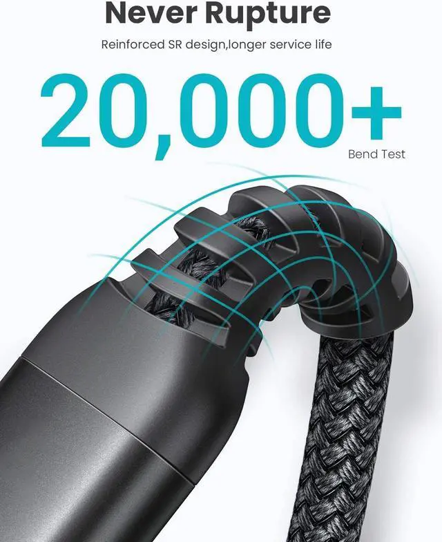 With premium aluminum alloy material connector, it passes 20, 000+ bending test, which ensures longer service life, and leaves you no broken worries.