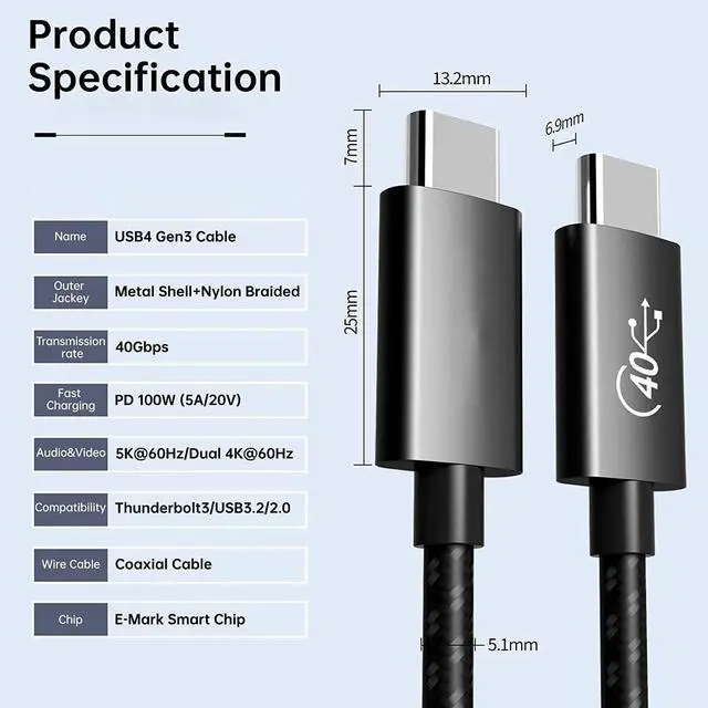 PackageIncluded: 1 * USB 4 Cable, 1 * Cable ties