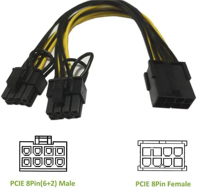 1 x Cable PCI-E PCIE 8P Female to 2 Port Dual 8pin 6P+2P Male GPU Graphics Video Card Power Supply Splitter Extension Cord 18AWG Wire for riser mining 20CM