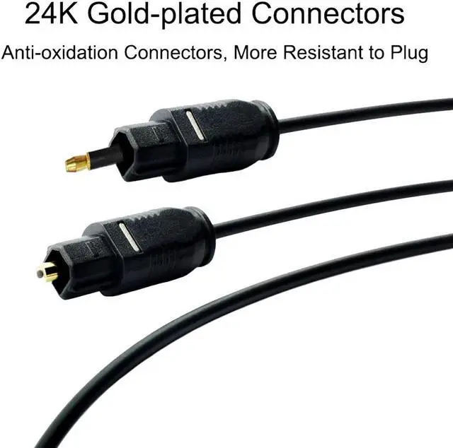Digital optical cable constructed with durable black PVC outer layer and corrosion-resistant gold-plated connectors for optimal signal transfer.