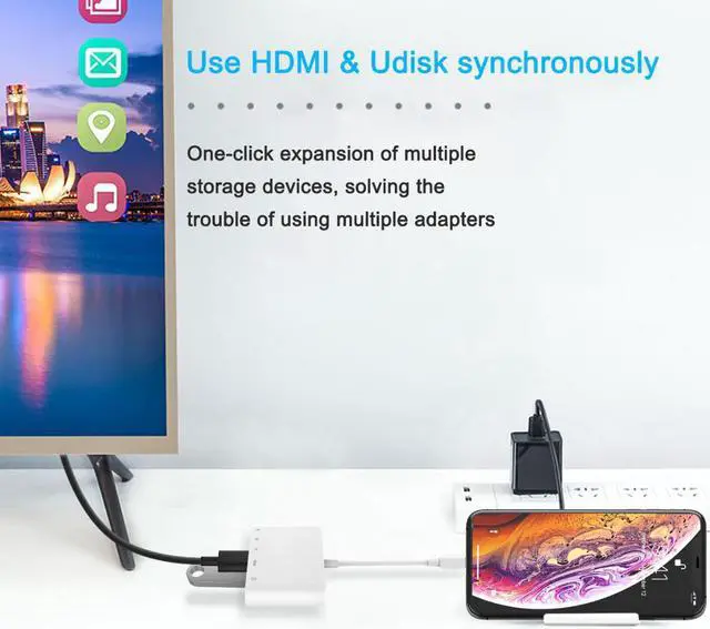 OTG HDMI USB adapter for ipad TF Card reader to 4 in 1 Hub adapter for iphone 7 8 X 11 Max XS pro camera connectorFeatures: