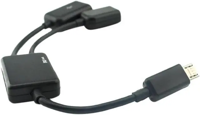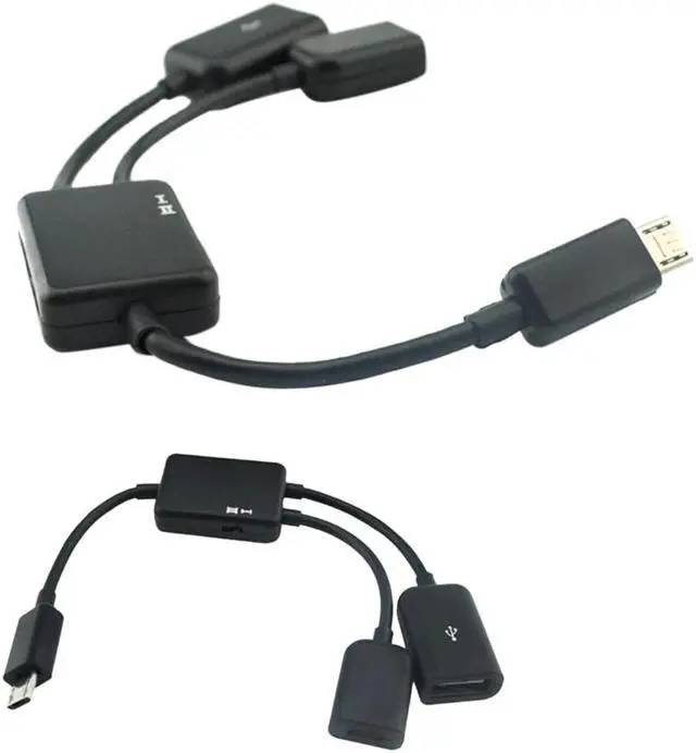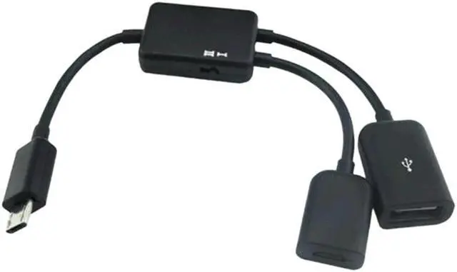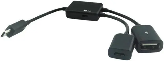 This OTG cable has 2 ports and 1 plug, Female Micro Port, Female USB Port and Male Micro Plug.